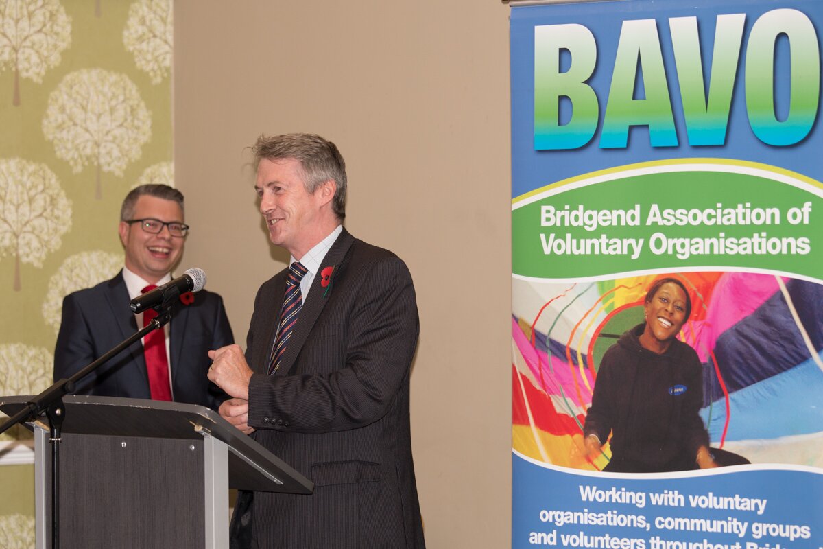 the Bridgend Association of Voluntary Organisations (BAVO) annual Bridgend County Borough Volunteer Achievement Awards in Bridgend alongside special guests Janice Gregory AM, Jayne James the Mid Glamorgan High Sheriff, the Vocalmotion school choir, and soloist Emily March from Ysgol Brynteg.